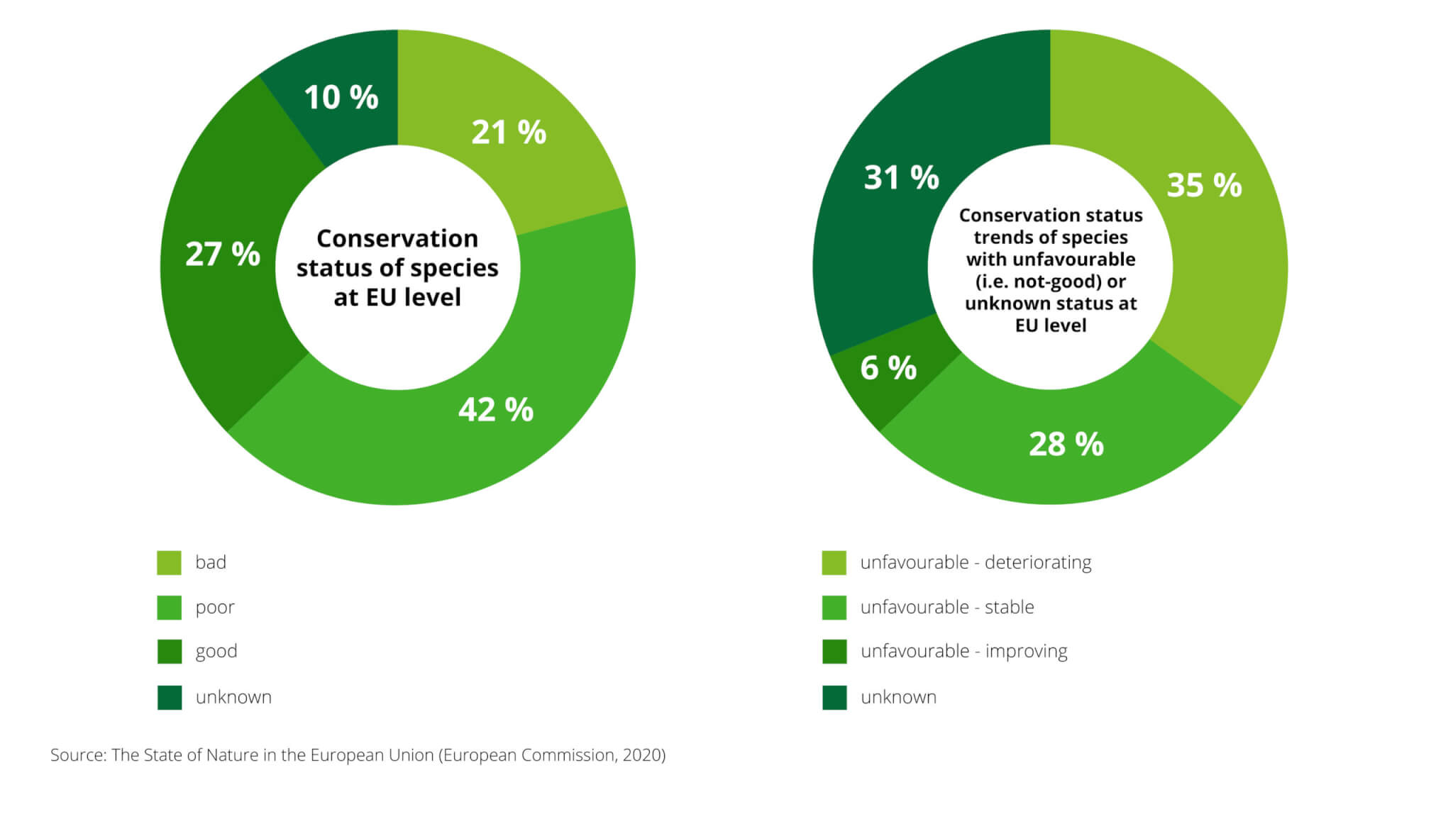 The recently published Commission Report on the State of Nature in the European Union does not provide many reasons for optimism either. The report evaluates the fulfilment of goals of the Birds and Habitats Directives on which the network of protected areas Natura 2000 is based. The data show that despite a network of protected areas, the habitat and species protection situation is not improving in a significant manner and the goals set for 2020 have not been achieved. The main pressures on the habitats include, unsurprisingly, intense agriculture (intensified use of land and hydrological regime change), forestry, urbanisation and hunting.