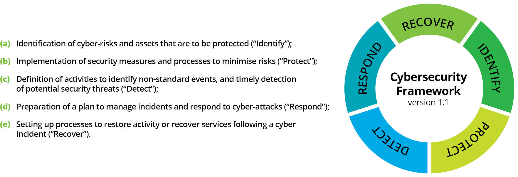 Cybersecurity frameworks are designed to help organisations reach this ideal state. That is, they are an important instrument for strengthening cybersecurity comprising methods, directives and best practices that enable organisations to plan, evaluate, adjust, implement and manage their measures aimed at enhancing cybersecurity and information security.