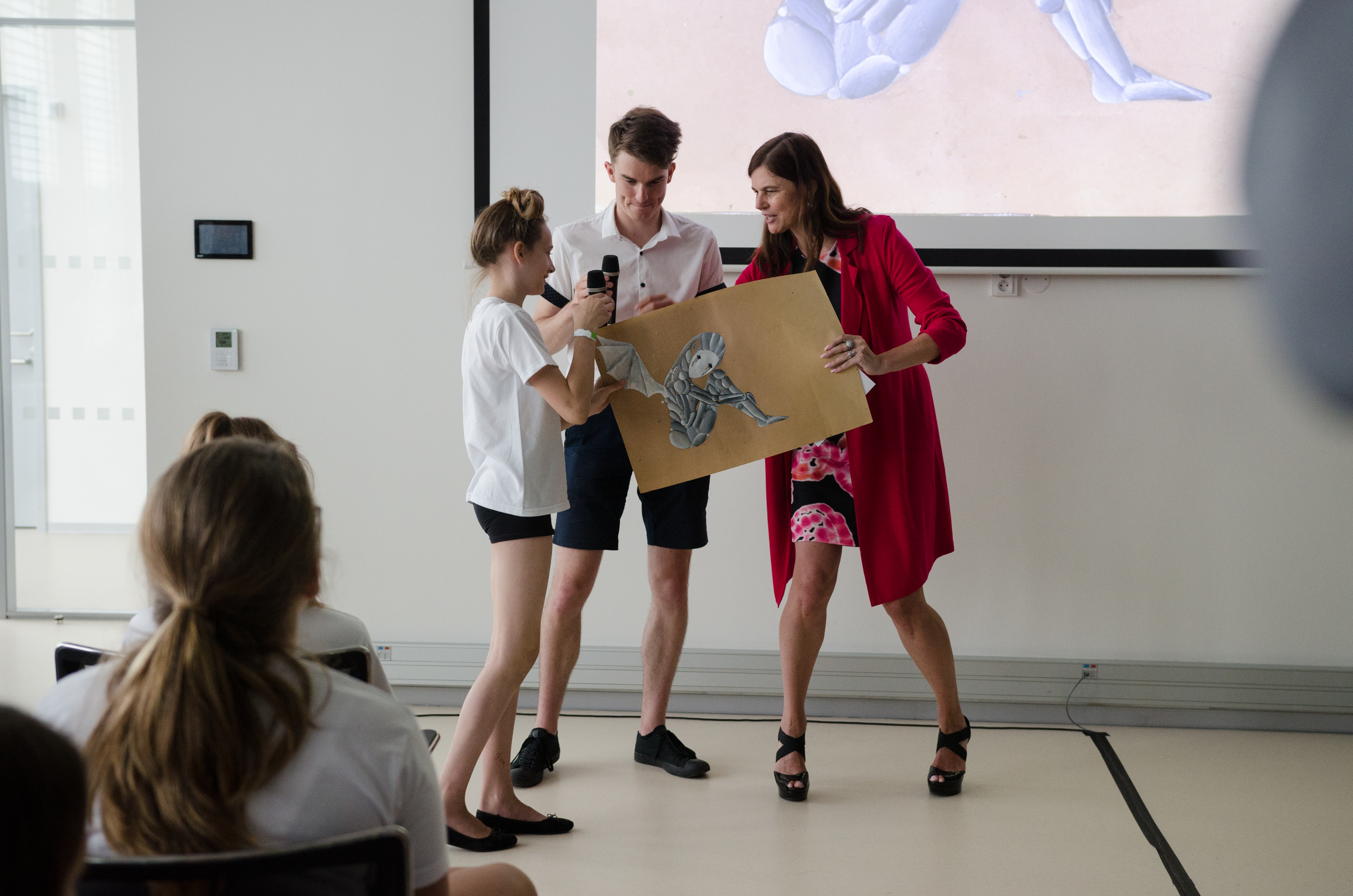After the introductory program, the children were divided into groups and took turns at Kovy’s workshop, and explored the modern centre of the Czech institute of information, robotics, and cybernetics as well as the actual robots. They could try out programming our very own robot dBot, who showed them a dance and answered their questions. In conclusion, awards were given out for the best projects, however, deciding between videos and pictures was no easy task, among the winners were two eight year old animator brothers and a really gifted painter that portrayed robotics from the future. She is crying because she is the only one of her kind in the world with feelings and so she feels lonely among the other robots… The author of the best photograph was also awarded for a picture that was created in a photobox during the event..