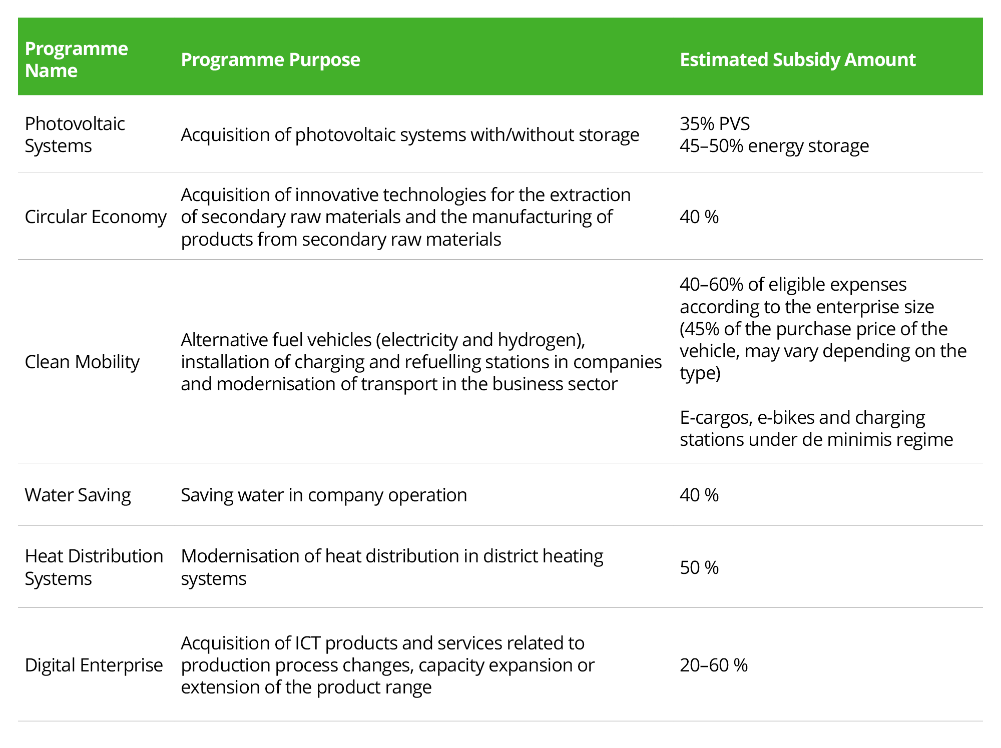 The Ministry of Industry and Trade is preparing the first calls from the National Recovery Plan (NRP), which are expected to be announced during February. The NRP aims to revitalise the economy through subsidies and help address the economic and social impacts of the coronavirus pandemic. Other objectives of the NRP include assisting with the implementation of green and digital transformation, enhancing productivity and achieving sustainability. To finance the green projects, the Ministry of Industry and Trade of the Czech Republic plans to release funds for the calls listed in the table below.