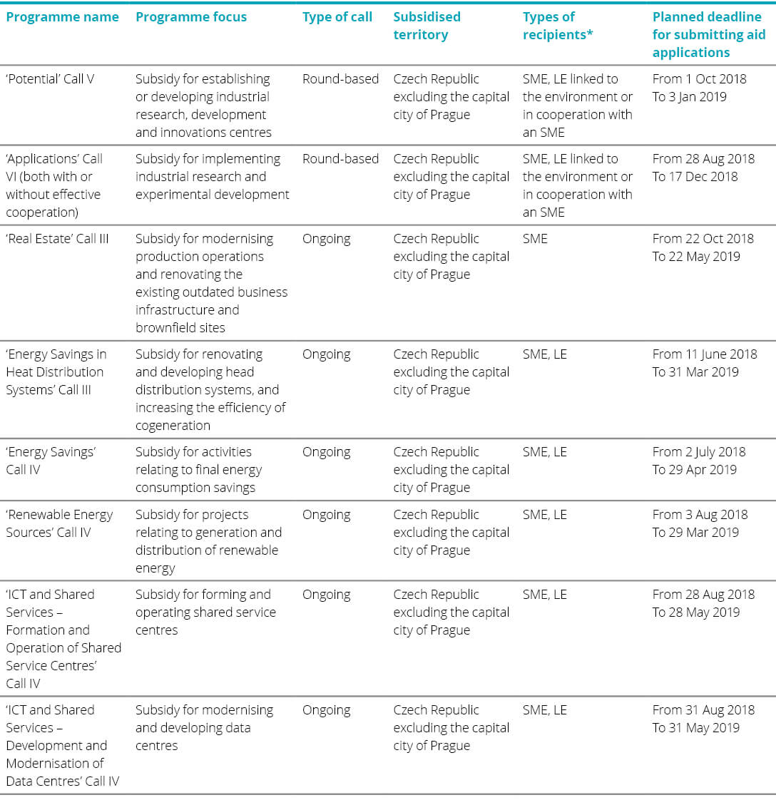 The table below presents the latest schedule of the calls already announced under the Enterprise and Innovation for Competitiveness Operational Programme (“OP PIK”), including the deadlines for submitting applications for aid in individual programmes.