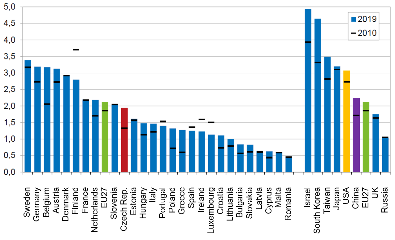 In the Czech Republic, we also realise the importance of R&D investments for the country’s overall economic situation. Over the last ten years, the R&D expenditure in the Czech Republic has more than doubled. In 2020, the expenditure slightly exceeded the existing record of 2019 and reached more than CZK 113 billion. In relation to the GDP, it exceeded 2% for the first time.