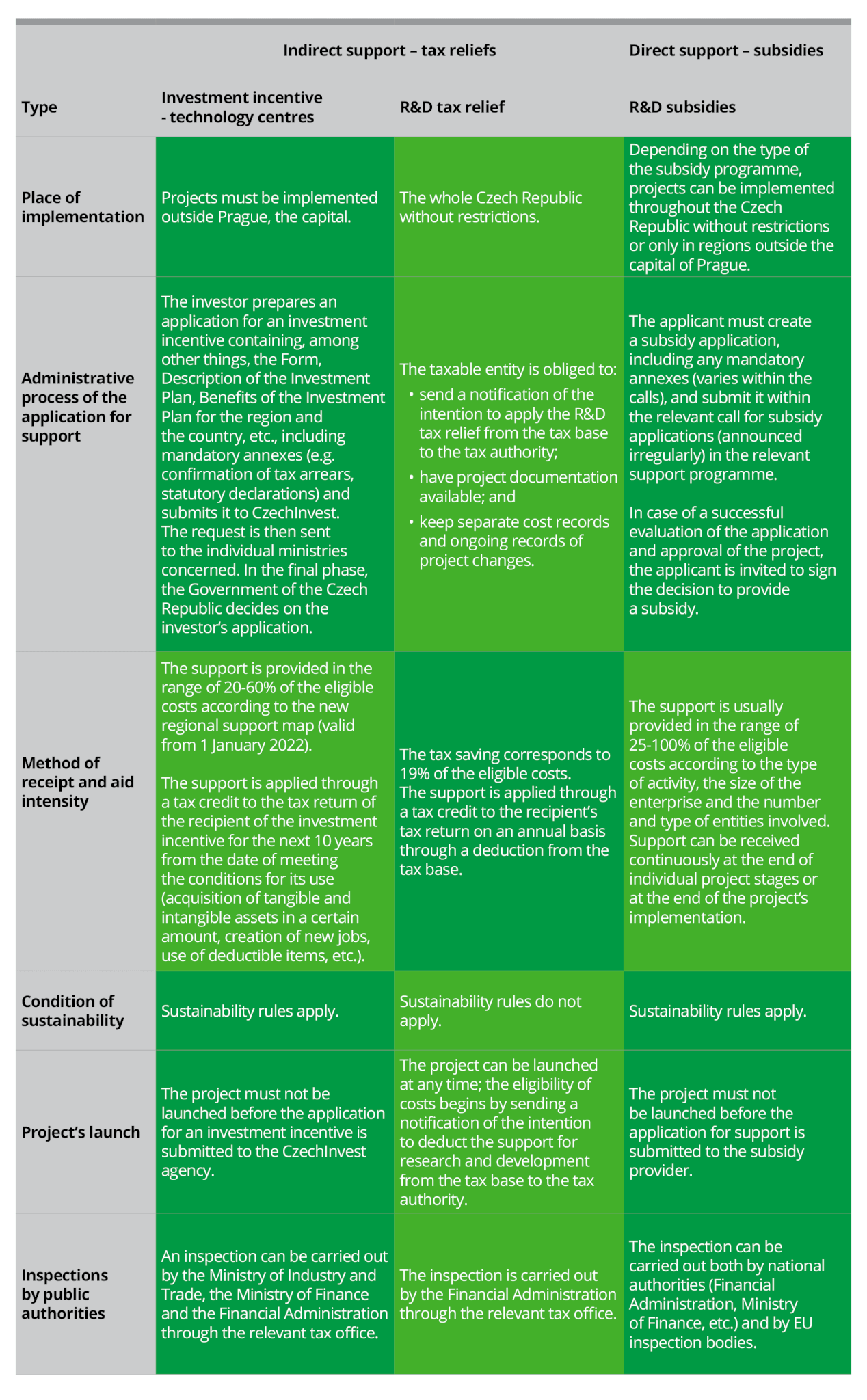Selected aspects of three types of support – subsidies, investment incentives and R&D tax relief: